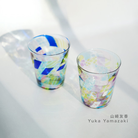 Yuka Yamazaki utilises the challenging technique of " chūbuki blown glass " (mid-air blowing) to shape her artwork, combining mosaic-like colourful blocks to create patterns. When sunlight passes through the clear glass, it produces a dazzling array of colours, creating a beautiful masterpiece.